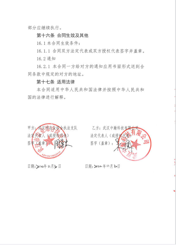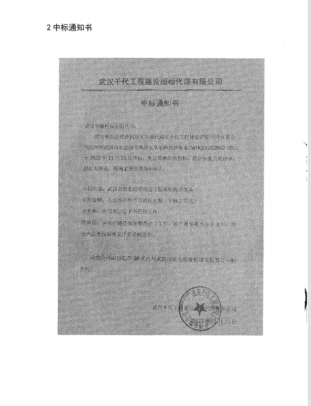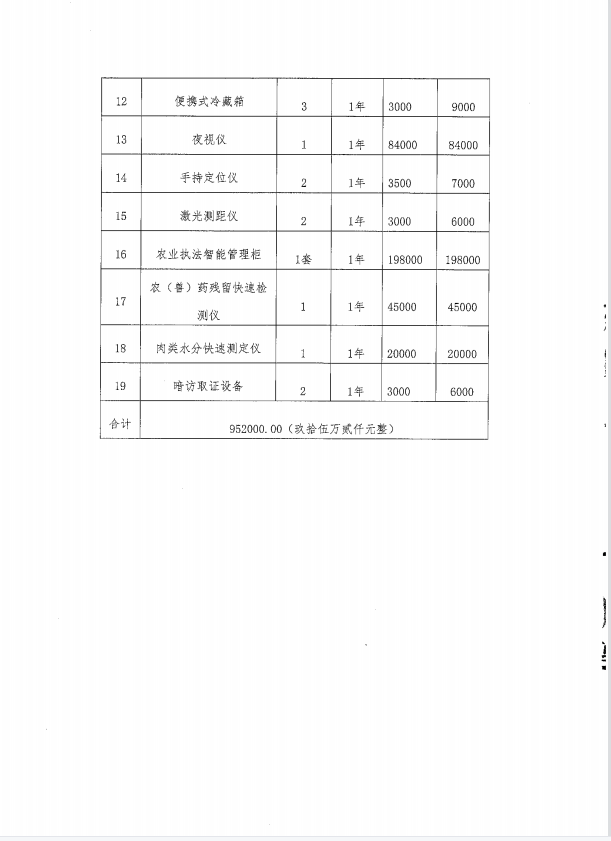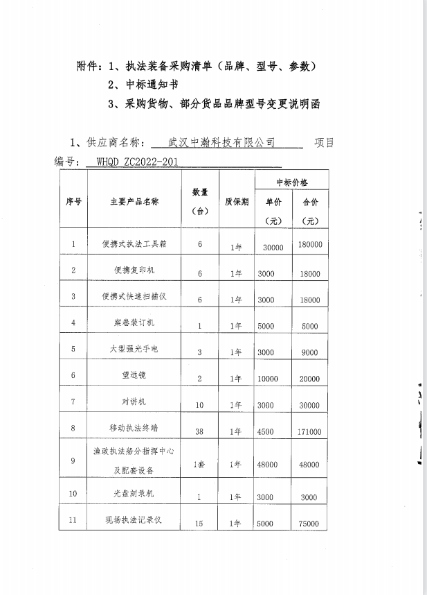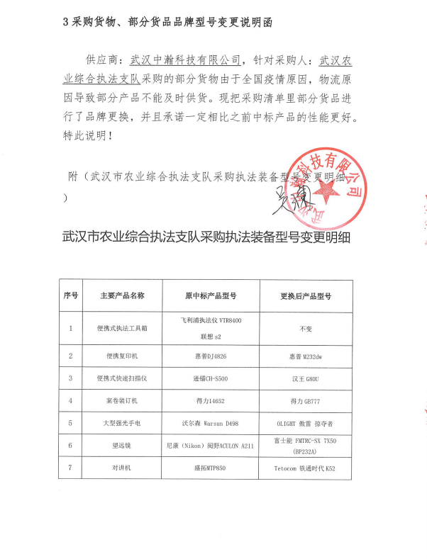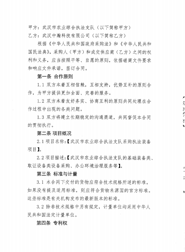 武漢市農業(yè)執(zhí)法支隊采購執(zhí)法裝備項目合同公示